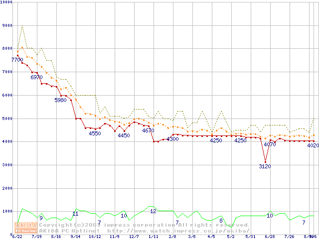 Socket A (PGA,FSB 200MHz,L2 64KB,Morgan)の最安値推移