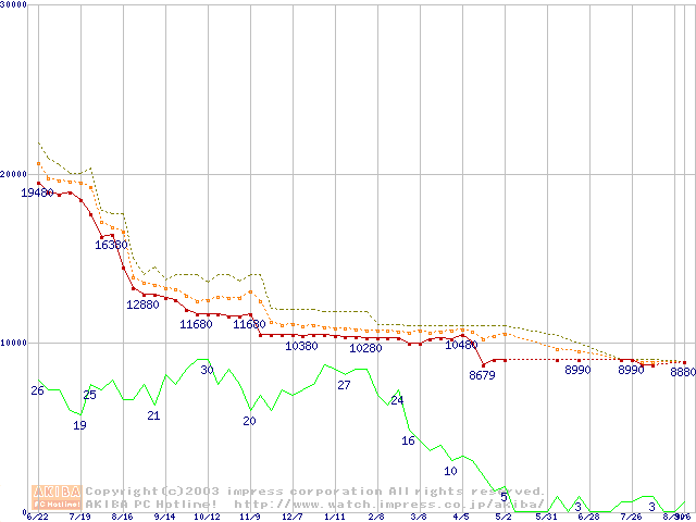 Athlon XP 2000+ (1.67GHz) リテールパッケージの価格推移