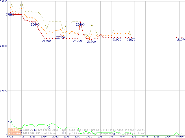 Socket 603 (micro-PGA,FSB 400MHz,L2 512KB,Prestonia)の最安値推移