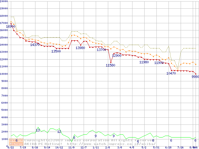 WD Caviar(Special Edition) (7200rpm,UltraATA/100,8MB)の最安値推移