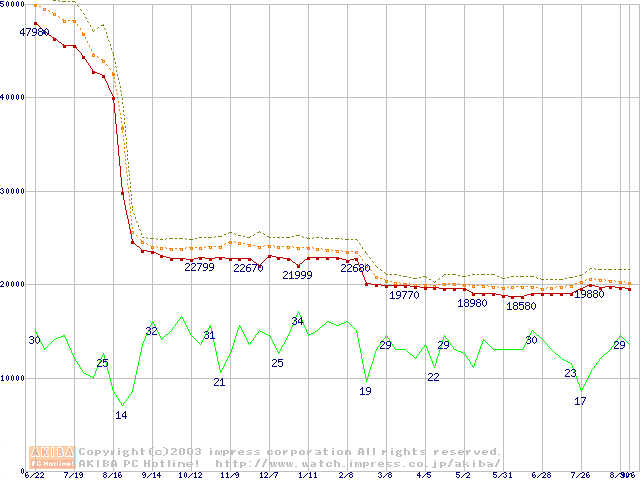 Socket 478 (micro-PGA,FSB 533MHz,L2 512KB,Northwood)の最安値推移