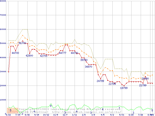 PC2100(DDR266) DDR SDRAM DIMM(CL 2.5)の最安値推移