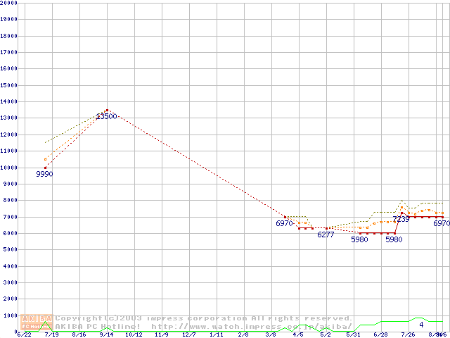 PC2700(DDR333) DDR SDRAM DIMM ECC対応 Registeredタイプの最安値推移