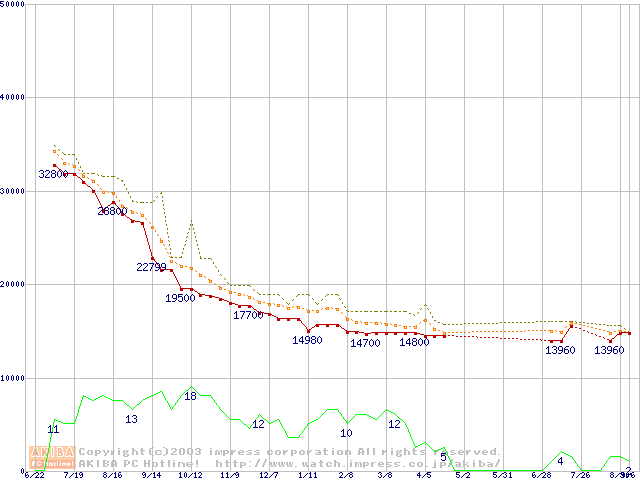 MKシリーズ (9.5mm,5400rpm,16MB,FDB)の最安値推移