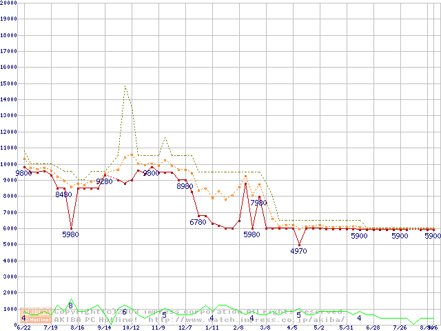 PC1066 DRDRAM RIMMの最安値推移