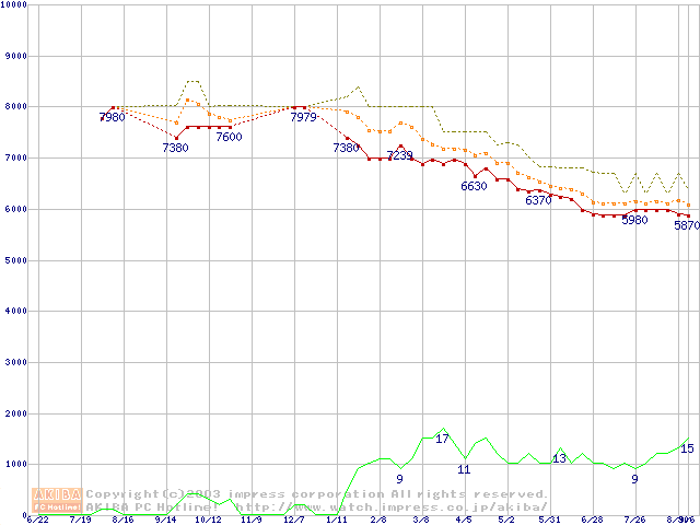 HDD主要製品の最安値推移