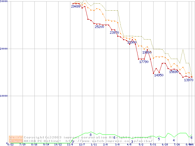 WD Caviar (7200rpm,UltraATA/100,2MB)の最安値推移
