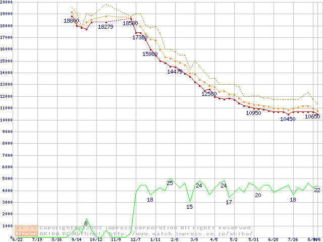 DiamondMax 16 (5400rpm,UltraATA/133,2MB,80GB/Platter,FDB)の最安値推移