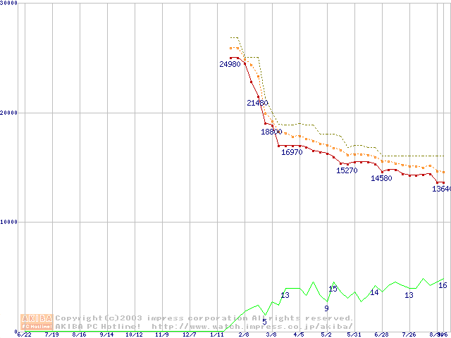 DiamondMax 16 (5400rpm,UltraATA/133,2MB,80GB/Platter,FDB)の最安値推移