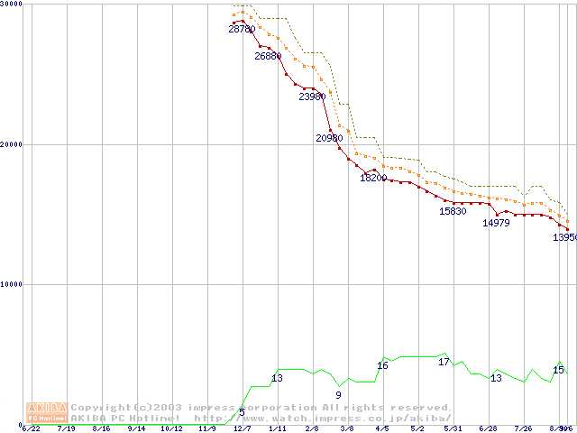 DiamondMax Plus 9 (7200rpm,2MB,UltraATA/133,FDB)の最安値推移
