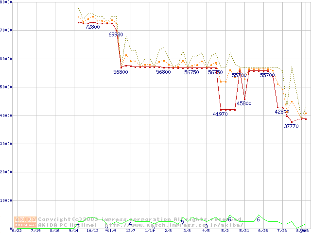 Socket 603 (micro-PGA,FSB 400MHz,L2 512KB,Prestonia)の最安値推移