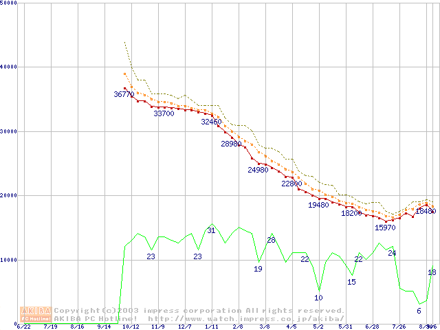Deskstar 180GXP (7200rpm,8MB,UltraATA/100,FDB)の最安値推移