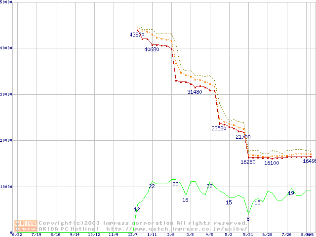 Socket A (OPGA,FSB 333MHz,L2 256KB,Thoroughbred)の最安値推移