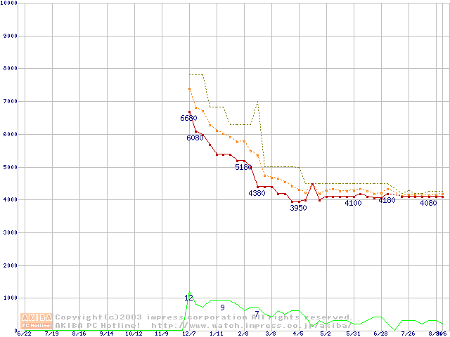 Socket 370 (PGA,FSB 100MHz,L2 64KB,Ezra)の最安値推移
