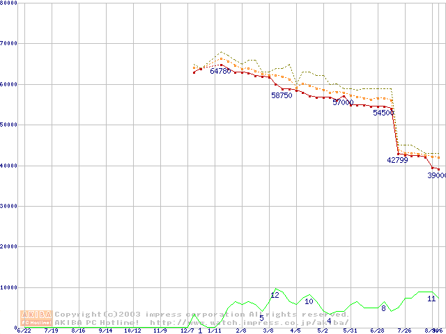 Xeon 2.80GHz(FSB533) リテールパッケージの価格推移