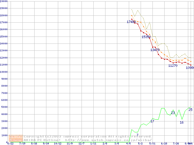 Barracuda 7200.7 (7200rpm,UltraATA/100,8MB,80GB/Platter,FDB)の最安値推移