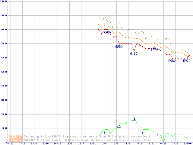Socket A (OPGA,FSB 266MHz,L2 256KB,Thoroughbred)の最安値推移