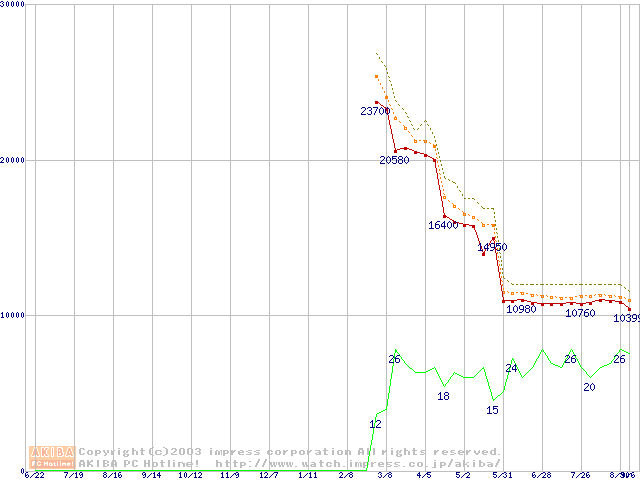 Athlon XP 2500+ (1.83GHz) リテールパッケージの価格推移