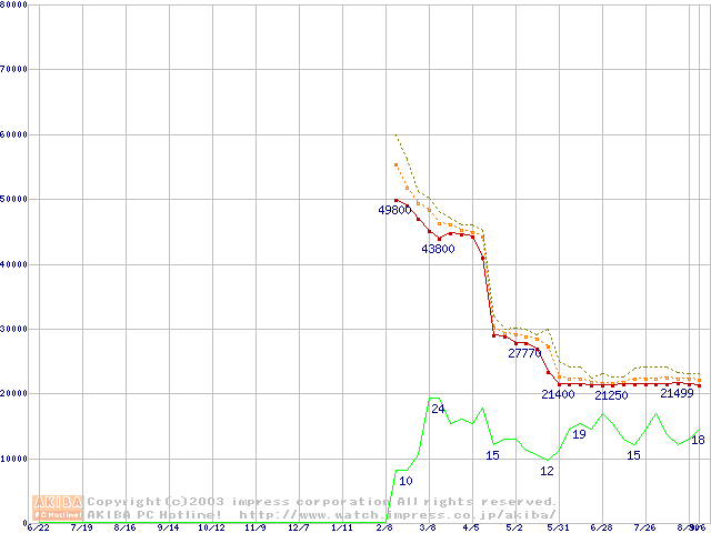 Athlon XP 2800+ (2.08GHz) リテールパッケージの価格推移