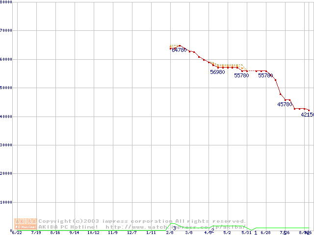 Xeon 2.80GHz(FSB533) リテールパッケージ(1U用)の価格推移