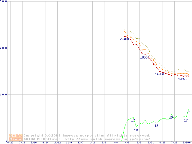 Barracuda 7200.7 (7200rpm,UltraATA/100,2MB,80GB/Platter,FDB)の最安値推移