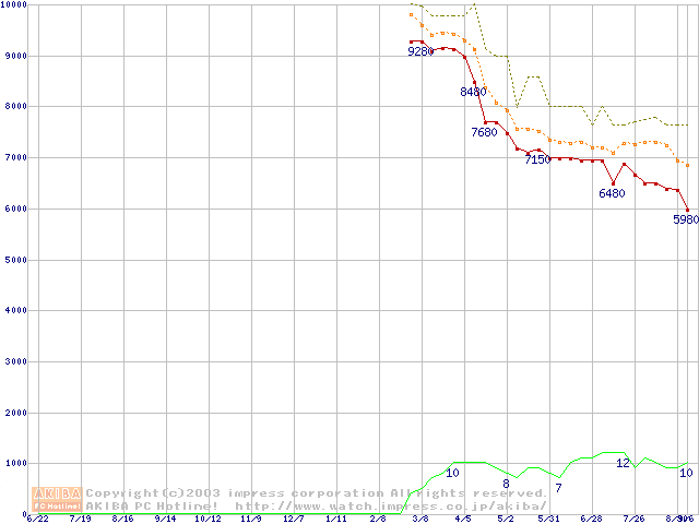 Socket A (OPGA,FSB 266MHz,L2 256KB,Thoroughbred)の最安値推移