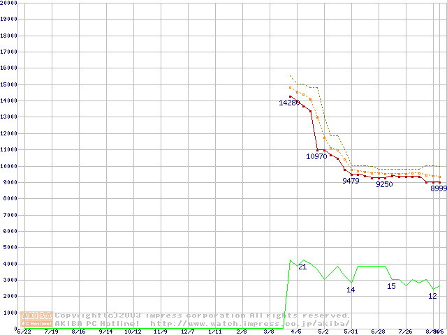 Socket 478 (micro-PGA,FSB 400MHz,L2 128KB,Northwood)の最安値推移
