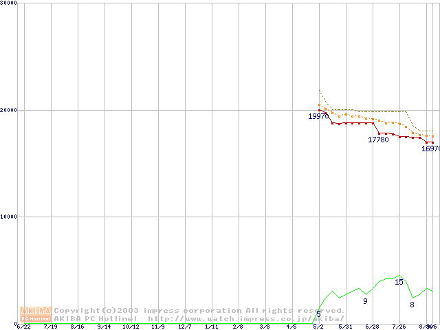 MHTシリーズ (9.5mm,4200rpm,UltraATA/100,2MB,FDB,40GB/Platter,FDB)の最安値推移