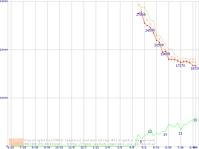 Barracuda 7200.7 (7200rpm,SerialATA,8MB,80GB/Platter,FDB)の最安値推移
