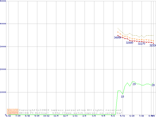 Socket 478 (micro-PGA,FSB 800MHz,L2 512KB,Hyper-Threading,Northwood)の最安値推移
