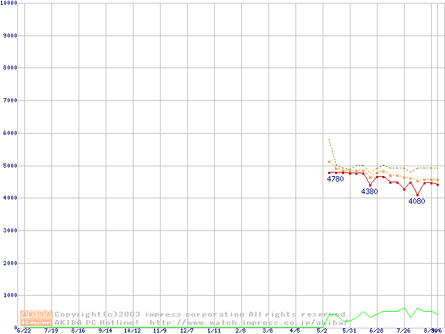 Socket 370 (PGA,FSB 133MHz,L2 64KB,Nehemiah)の最安値推移