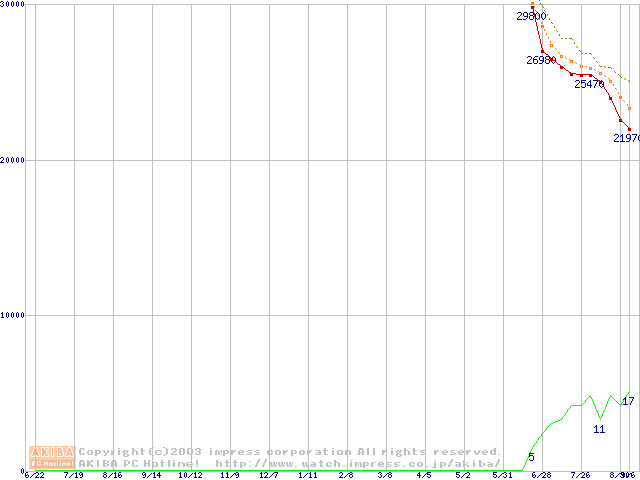 DiamondMax Plus 9 (7200rpm,8MB,SerialATA/150,FDB)の最安値推移