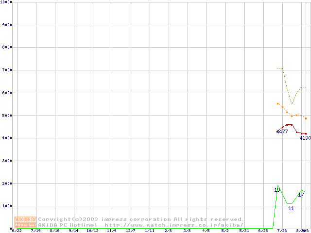 PC3200(DDR400) DDR SDRAM DIMMの最安値推移