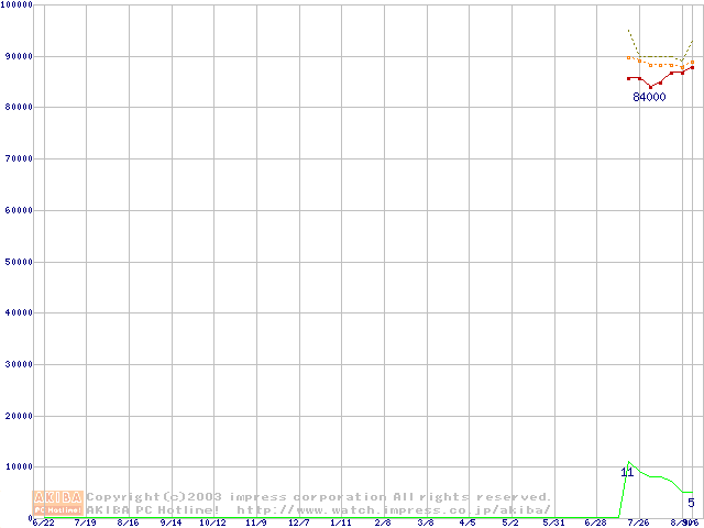 Socket 604 (micro-PGA,FSB 533MHz,L2 512KB,Prestonia)の最安値推移