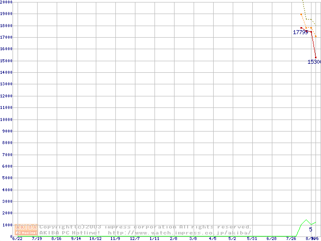 Travelstar 5K80 (9.5mm,5400rpm,UltraATA/100,8MB,FDB,40GB/Platter)の最安値推移