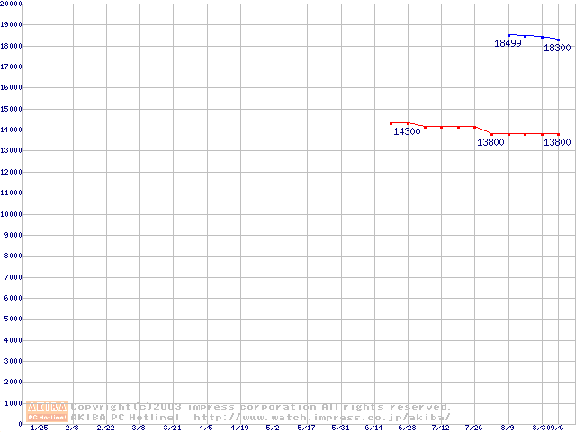 | [↑前グラフ]: | Travelstar 40GN (9.5mm,4200rpm,UltraATA/100,2MB,FDB,20GB/Platter)の最安値推移 |