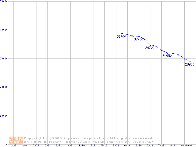 | [↑前グラフ]: | Travelstar DK23EA (9.5mm,4200rpm,UltraATA/100,512KB)の最安値推移 |