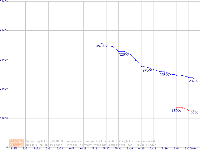 | [↑前グラフ]: | MKシリーズ (9.5mm,5400rpm,16MB,FDB)の最安値推移 |