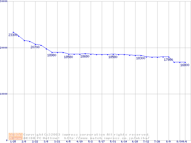 | [↑前グラフ]: | MKシリーズ (9.5mm,4200rpm,8MB,FDB,40GB/Platter)の最安値推移 |