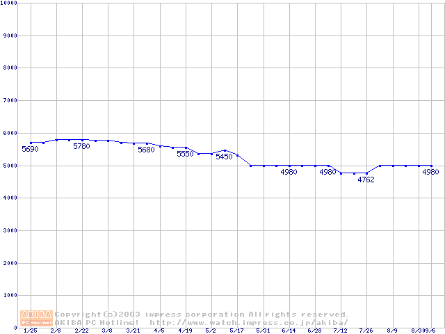 | [↓次グラフ]: | Socket A (PGA,FSB 200MHz,L2 256KB,Thunderbird)の最安値推移 |