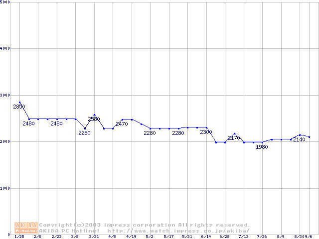 | [↑前グラフ]: | Socket A (PGA,FSB 200MHz,L2 64KB,Morgan)の最安値推移 |