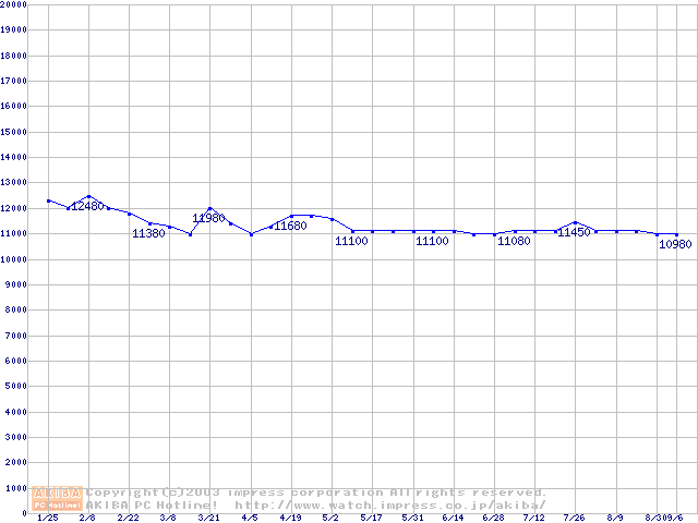 | [↑前グラフ]: | Socket 370 (FC-PGA2,FSB 133MHz,L2 512KB,Tualatin)の最安値推移 |