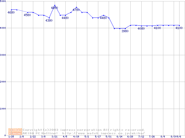 | [↓次グラフ]: | Socket A (OPGA,FSB 400MHz,L2 512KB,Barton)の最安値推移 |