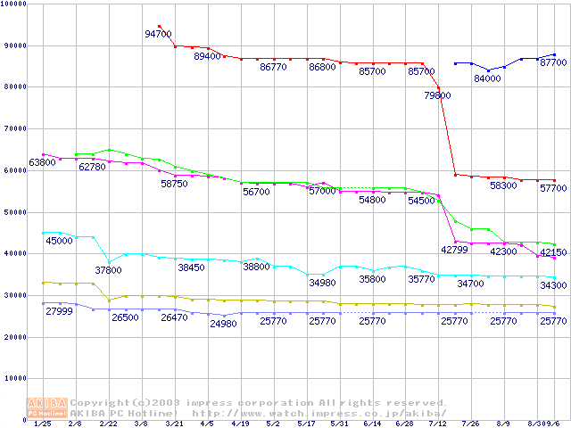 | [↓次グラフ]: | Socket 603 (micro-PGA,FSB 400MHz,L2 512KB,Prestonia)の最安値推移 |