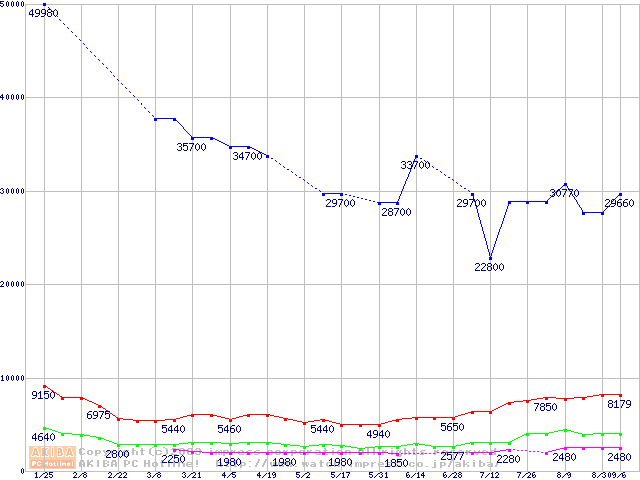 | [↑前グラフ]: | PC4000(DDR500) DDR SDRAM DIMMの最安値推移 |