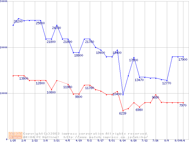 | [↓次グラフ]: | PC3700(DDR466) DDR SDRAM DIMMの最安値推移 |