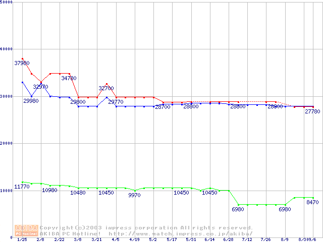 | [↓次グラフ]: | Socket 478 (micro-PGA,FSB 800MHz,L2 512KB,Hyper-Threading,Northwood)の最安値推移 |