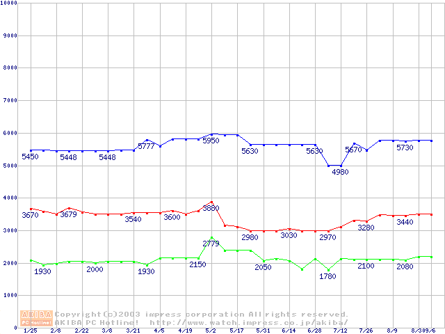 | [↓次グラフ]: | PC133 SDRAM DIMM CasLatency=2の最安値推移 |