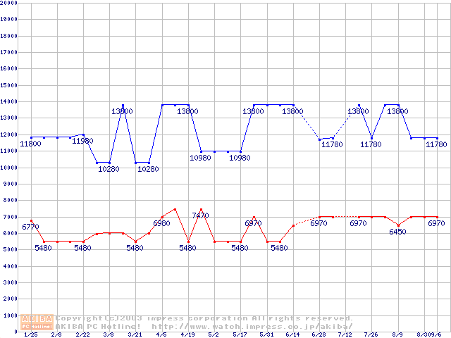 | [↓次グラフ]: | PC100 SDRAM DIMM CasLatency=2の最安値推移 |