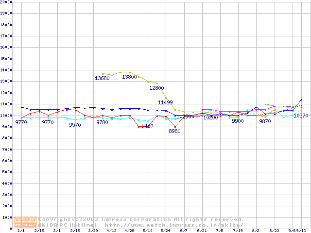 | [↓次グラフ]: | 2.5インチHDD 30GB~40GB未満(9.5mm厚)の最安値推移 |